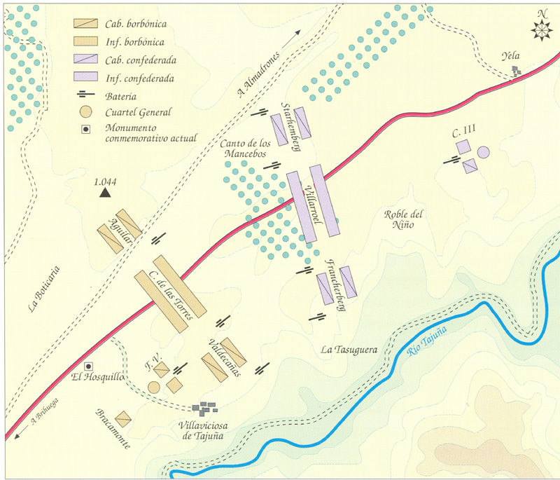Despliegue de ambos ejércitos en la batalla de Villaviciosa.