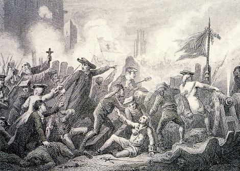 Asalto a una barricada. "Historia del memorable sitio y bloqueo de Barcelona", por Mateo Bruguera.