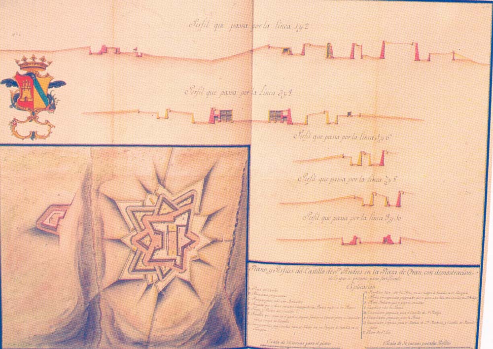 Plano con las defensa construidas por los ingenieros españoles en la plaza de Orán a partir de 1732. La operación quedó en manos del primer ministro Patiño que, como siempre, la llevó a cabo con exquisita eficiencia. Para ello organizó una fuerza militar de 30.000 hombres que embarcaron en un gran número de barcos de transporte escoltados por una flota de 12 navíos de guerra y 7 galeras. El mando de la expedición se otorgó al conde de Montemar. La flota partió de Alicante el 15 de junio de 1732 y cruzó el Estrecho. No se informó del objetivo de los preparativos hasta que zarpó la flota, momento en que el rey publicó en Sevilla un decreto haciendo públicas sus intenciones. Orán resistió poco tiempo. Tanto la fortaleza como el vecino pueblo de Mazalquivir fueron ocupados después de seis dias. Se desconoce el número de bajas españolas, pero el embajador británico, Keene, las estimó en unos 3.000 hombres muertos y heridos. La noticia llegó a Sevilla el 8 de julio y dió lugar a grandes fiestas, en las que la Giralda resplandeció con fuegos artificiales. A mediados de agosto el rey otorgó el Toisón de Oro a su ministro Patiño y al conde de Montemar. A pesar del éxito, la conquista reportó poca seguridad a la seguridad y navegación española en el Mediterráneo, pues Gibraltar seguía en manos británicas. A partir de 1732 los ingenieros españoles trabajaron en las defensas de la plaza, de tal manera que la ciudad llegó a albergar una Academia de Matemáticas regida de modo similar a la de Barcelona. En ella trabajaron los siguientes ingenieros: