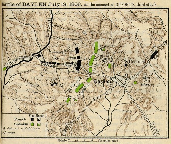 A las seis de la tarde se presentó ante Vedel el capitán Barbarín, ayudante de Dupont, con la orden de suspender las acciones contra los españoles, dandose con ello por terminada la batalla de Bailén.