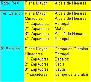 Distribución de los Jefes y Oficiales del Real Cuerpo de Ingenieros en 1808 en el territorio español peninsular y balear. FUENTE: Memorial de Ingenieros. Mayo de 1908. Año LXIII. Número V. Página 187-188 En resumen, el despliegue de los Ingenieros en 1808 era el siguiente: