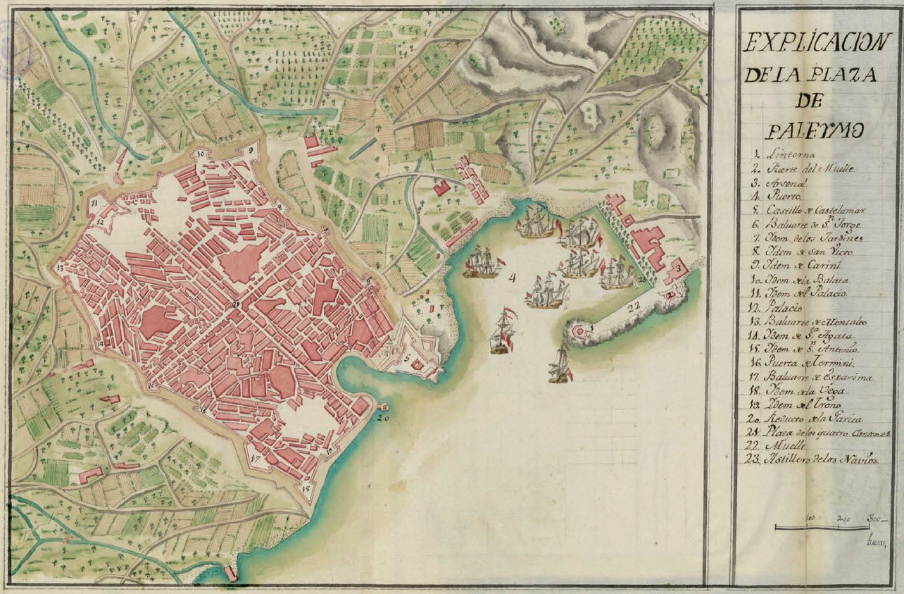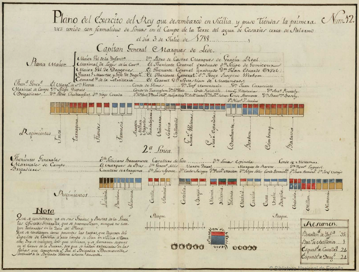 Guzmán-Dávalos y Spínola, Jaime de, marqués de la Mina. Planos de la guerra de Cerdeña y Sicilia. Biblioteca Nacional de España. MSS 6408. 80 páginas, 17,2 MB.