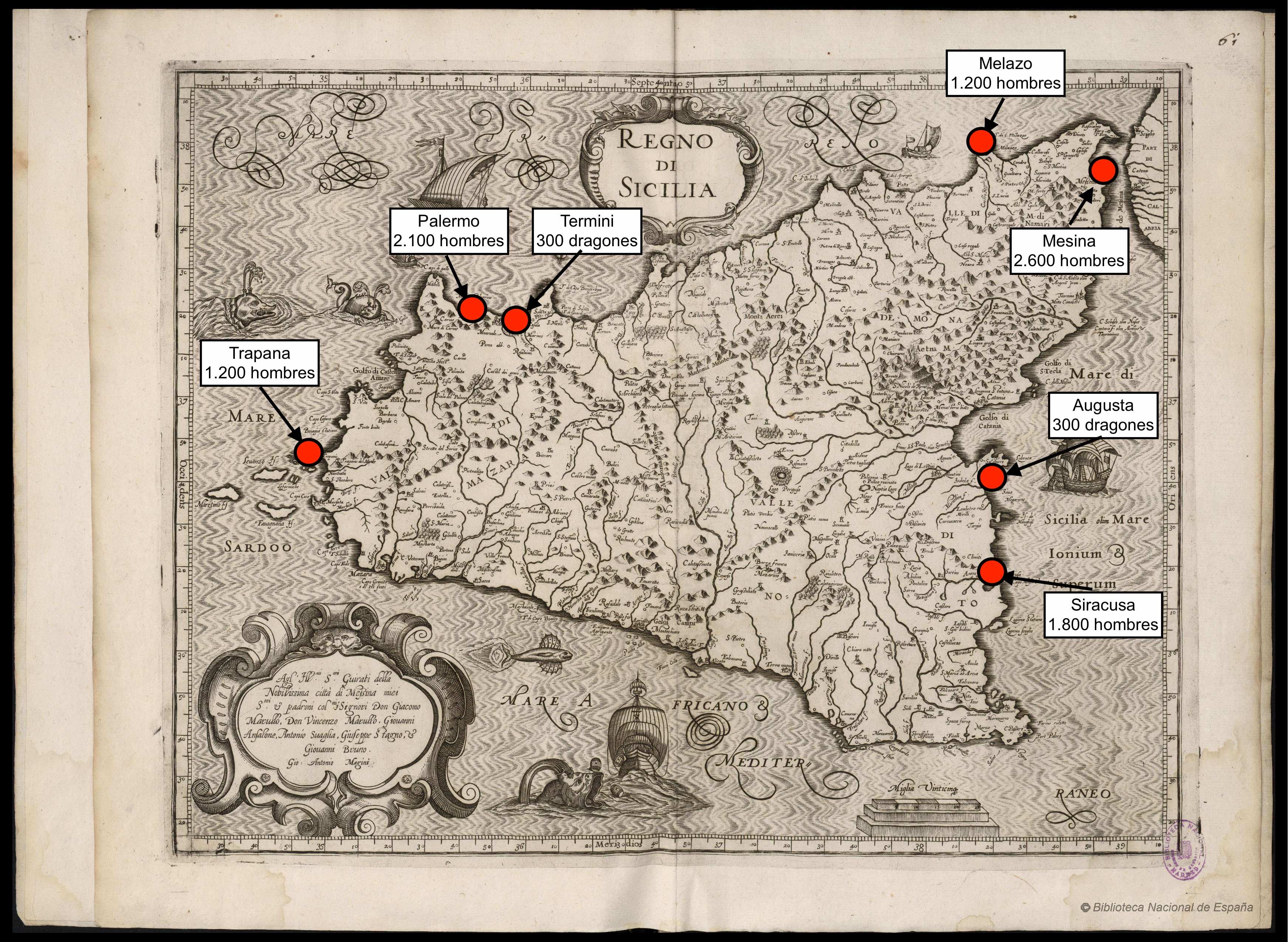 Este ejército saboyano se hallaba desplegado en ocho plazas de la isla: