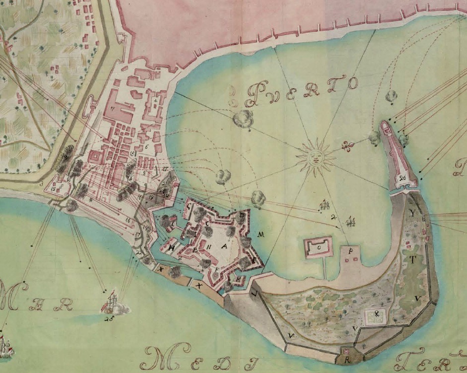 El baluarte de Corumberg era el que estaba orientado hacia el interior del puerto.
