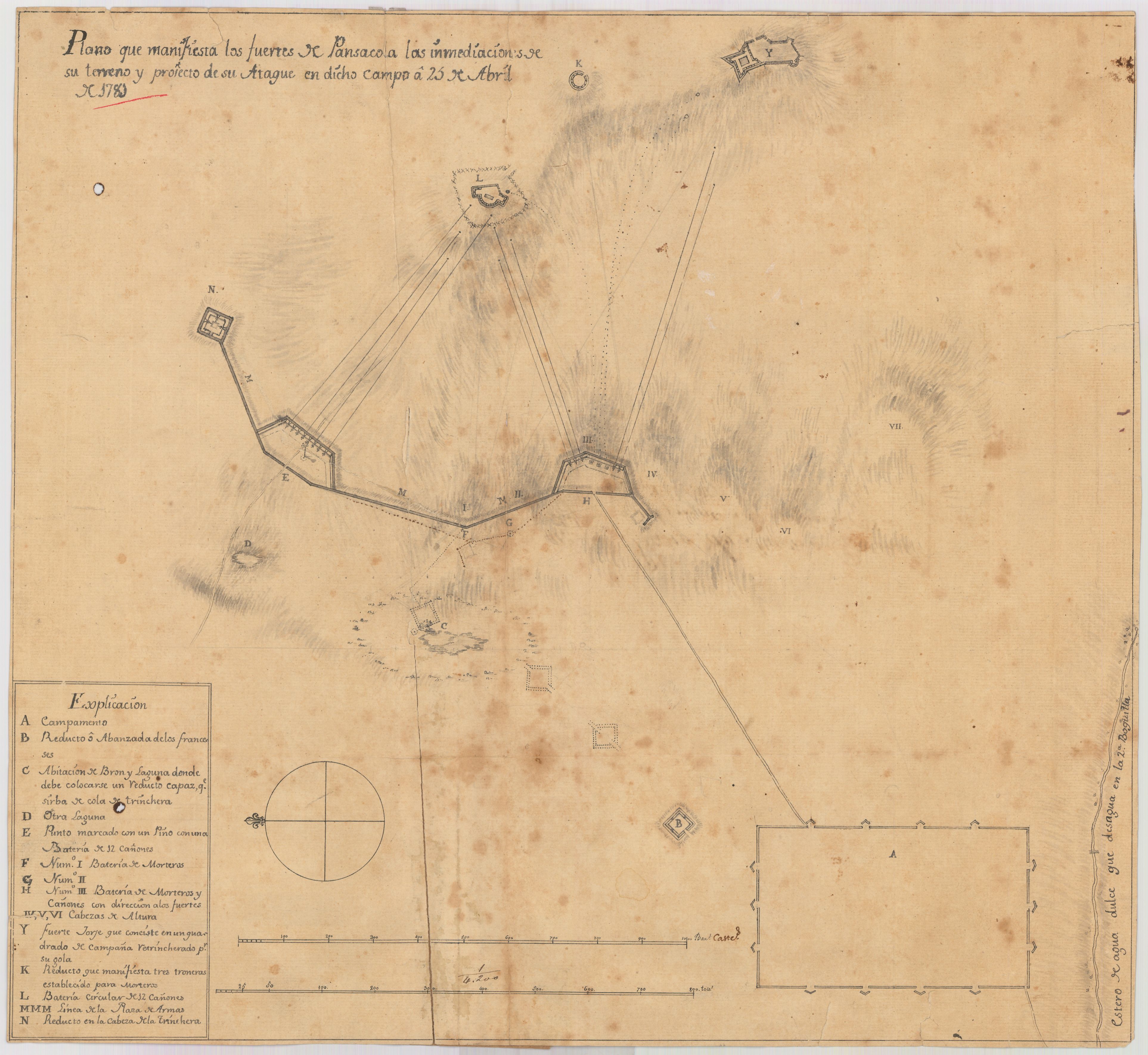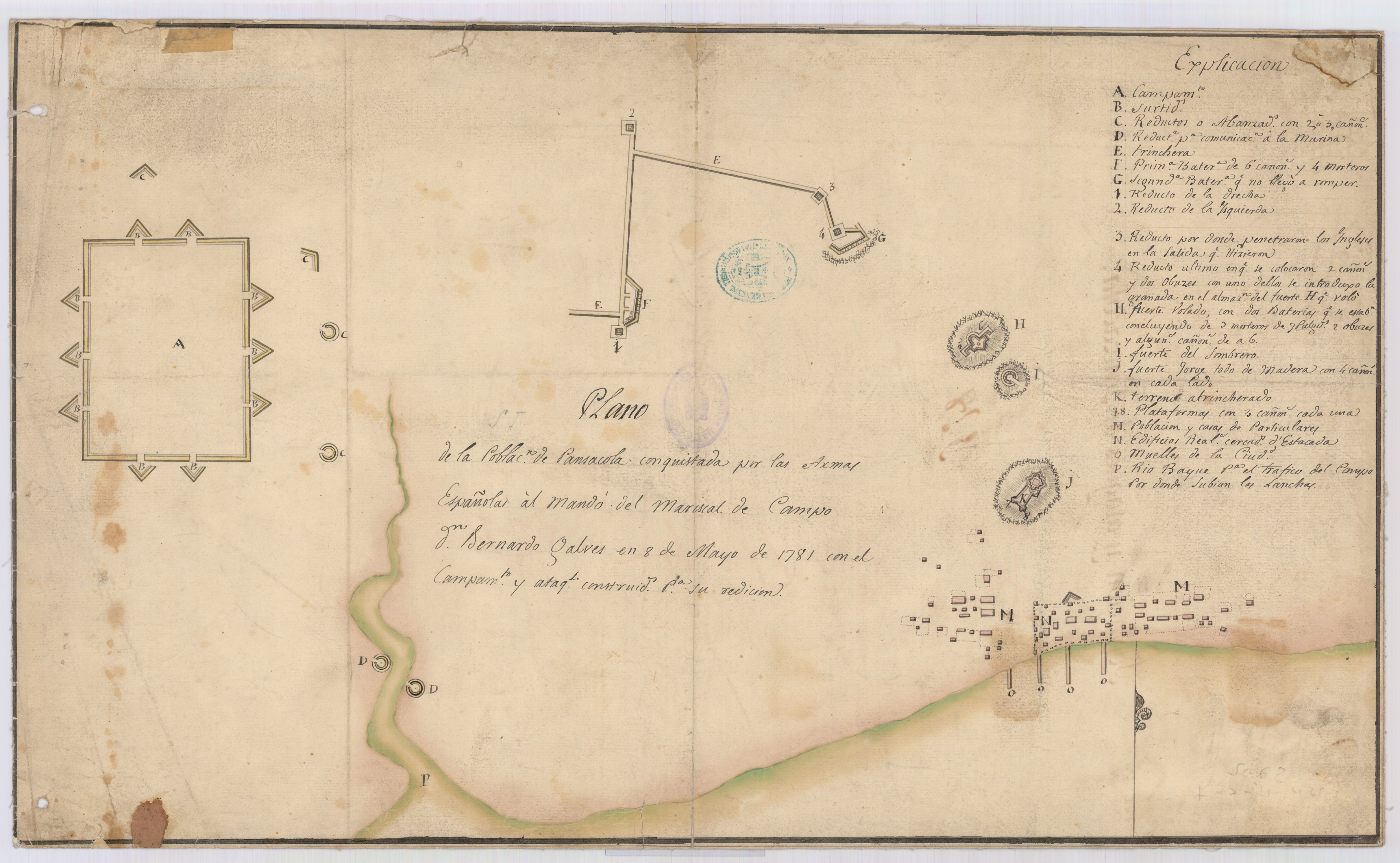 Gálvez, Bernardo de. DIARIO de las operaciones de la expedición contra la Plaza de Panzacola concluida por las Armas de S.M. Católica baxo las órdenes del Mariscal de Campo D. Bernando de Gálvez. Panzacola, 12 de mayo de 1781. 69 páginas. 10 MB.