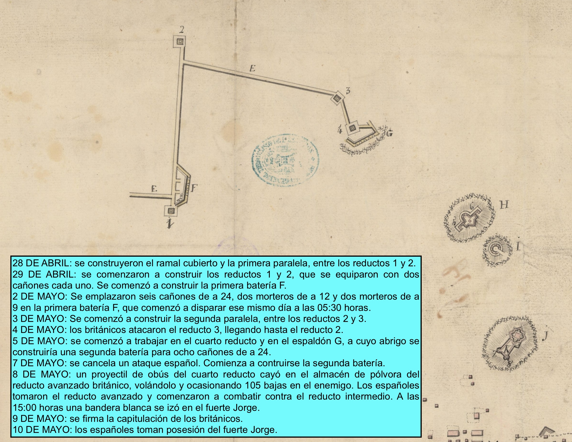 Un reducto intermedio donde los británicos habían emplazado 10 cañones que hizo mucho fuego sobre las tropas españolas.