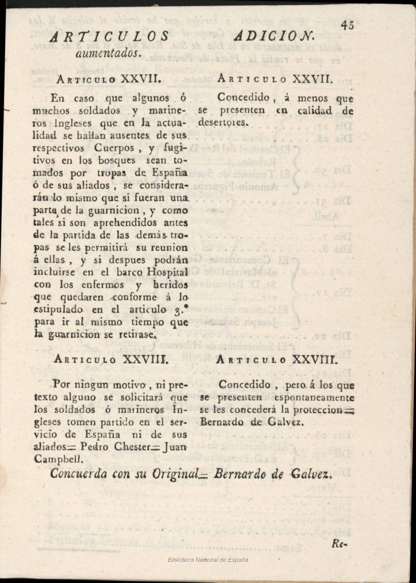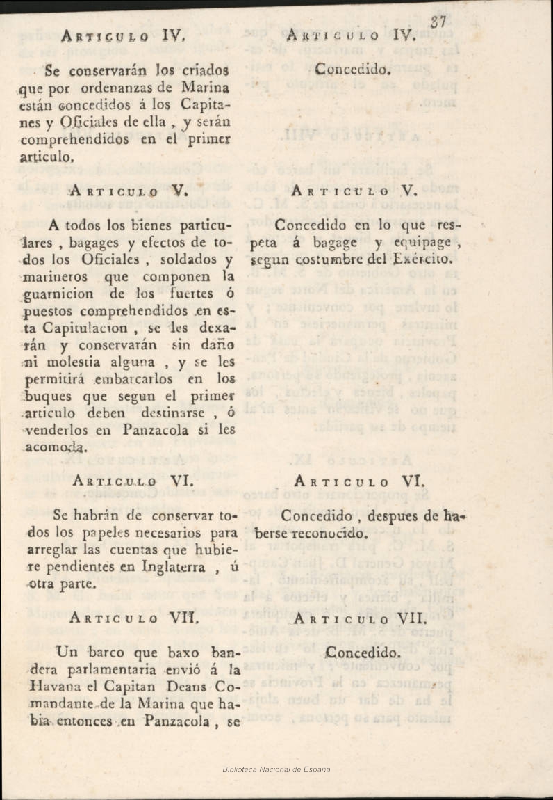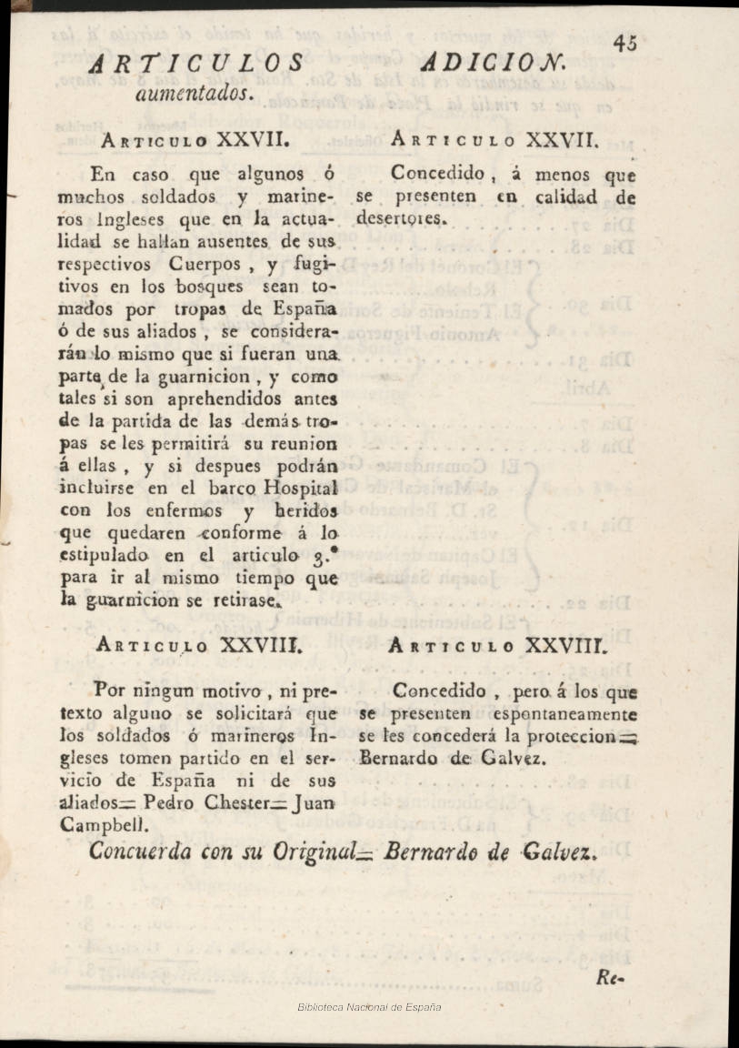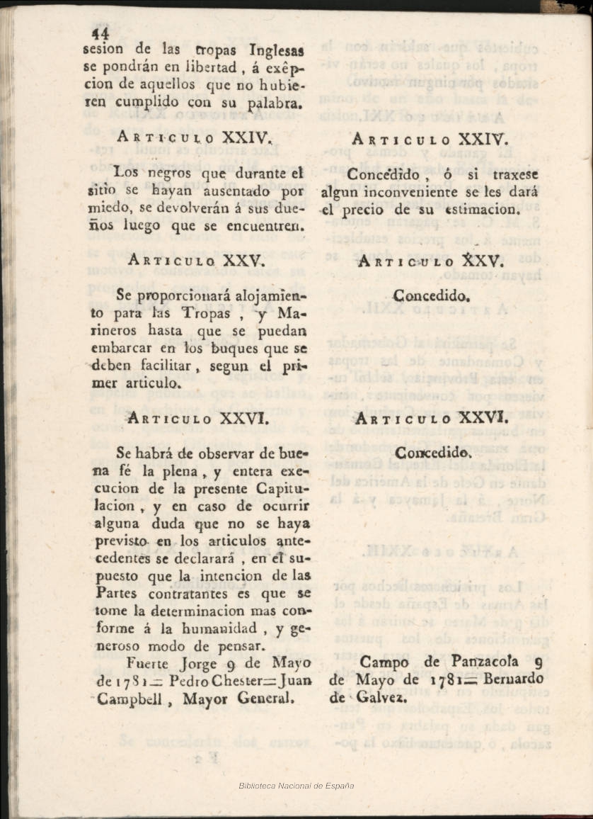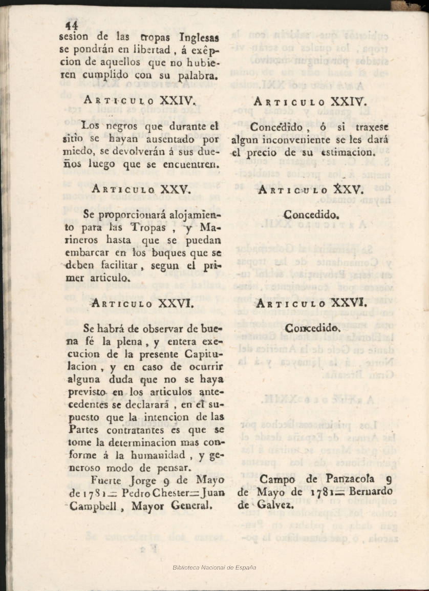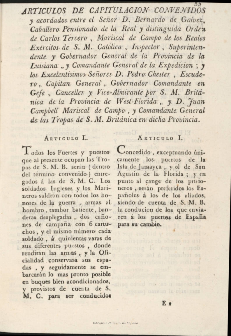Acceso al fichero PDF de los términos de la capitulación del general Campbell ante el mariscal de campo don Bernardo de Gálvez: