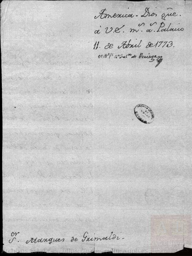 Acceso al fichero PDF Carta de Julián de Arriaga al marqués de Grimaldi, de 11 de abril de 1773.