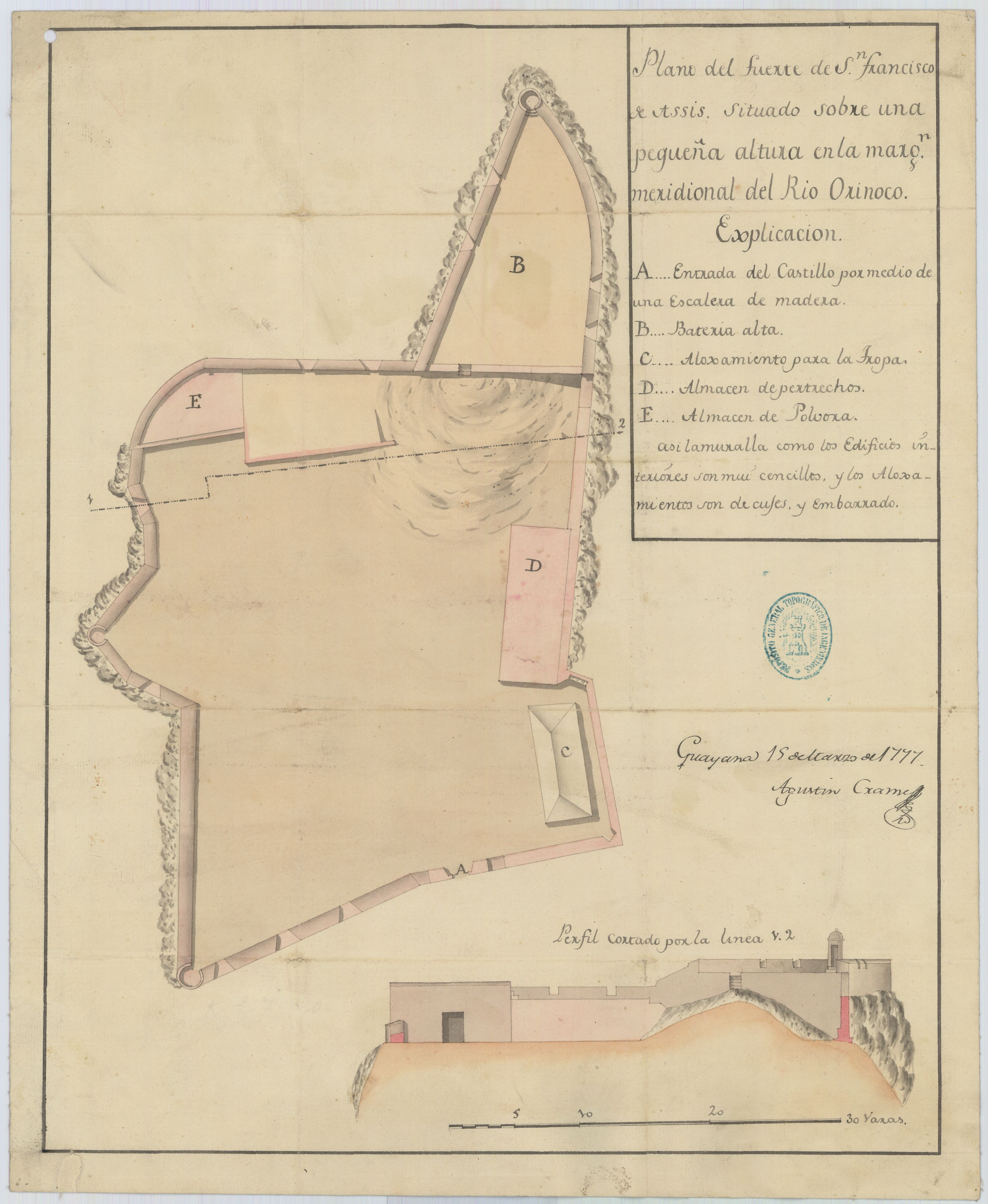 Plan del brigadier don Agustín Crame para la defensa de la provincia de la Guayana, fechado el 15 de marzo de 1777.