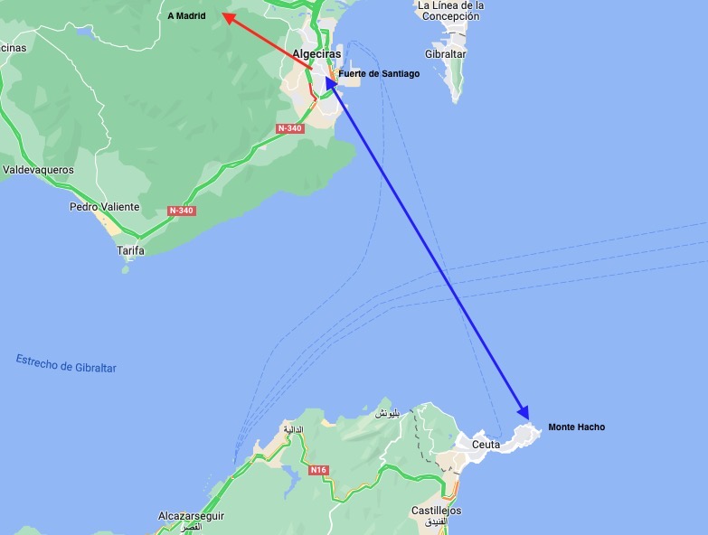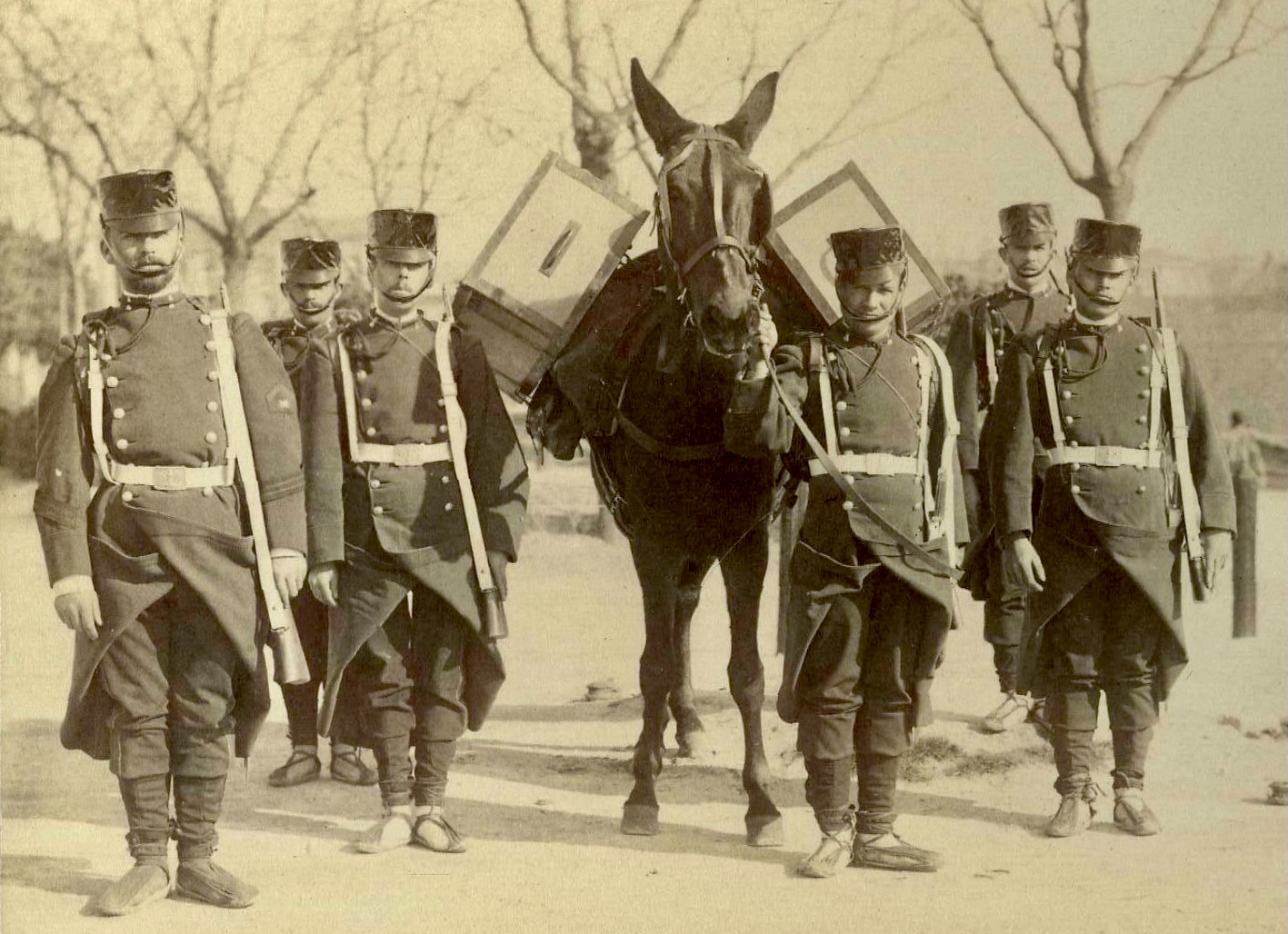 Uno de los primeros trabajos encomendados a las tropas de Telégrafos tras la guerra civil fue el enlace de la península con la plaza de Ceuta, realizada con ocasión del viaje que efectuó S.M. el Rey Alfonso XII a esta última. Debido a la ausencia de telegrafía eléctrica que uniese ambas orillas del estrecho, la Real Orden de 1 de marzo de 1877 dispuso que una sección de Telégrafos del Cuarto Regimiento de Ingenieros estableciese un enlace óptico con heliógrafos entre Algeciras y Ceuta para mantener al rey permanentemente enlazado con la capital. El empleo del heliógrafo supuso un importante avance en la telegrafía óptica, pues permitía reflejar los rayos del sol en los espejos del aparato y emplear sus destellos combinados con el código Morse para la transmisión de mensajes[09].