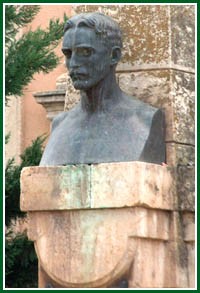 La figura del capitán Arenas, queridísima para cuantos habían sido compañeros de campaña, se agigantó tras su heroica muerte. Previos los trámites correspondientes, en 1924 le fue concedida a título póstumo la Cruz laureada de San Fernando. Y en 1928 se inauguró en Molina de Aragón, en un solemnísimo acto al que acudió el Rey Alfonso XIII y parte de su Gobierno, un monumento a este preclaro hijo del Señorío, que aún hoy puede admirarse en el atrio de entrada al Instituto. Vemos junto a estas líneas el busto realizado en bronce por el extraordinario escultor Coullaut Valera, de quien aparece firma en la parte baja de la talla, y consta de un pedestal que sostiene un monolito de piedra, rematado en un castillete símbolo del Arma de Ingenieros, y sobre una repisa en su parte anterior, se muestra el busto en bronce del militar que, con su gran juventud -tenía 29 años al morir- supo escribir página tan gloriosa para la historia de España y poner así su nombre en el abultado número de las figuras que por uno u otro motivo han merecido asomarse a estas páginas. En el mismo monumento molinés aparece esta leyenda "El Cuerpo de Ingenieros y la Ciudad de Molina al laureado capitán D. Félix Arenas. Muerto en Tistoren - Africa, 29 de Julio de 1921. Inaugurado por S.M. el Rey D. Alfonso XIII el 5 de julio de 1928". En ese momento, la ciudad de Molina le dedicó una calle, y en 1956, lo hizo también la ciudad de Guadalajara, quedando su memoria eternizada en la céntrica rúa que va de San Ginés a la Plaza de Toros. Para ver más héroes del Desastre de Annual, pulse aquí. |